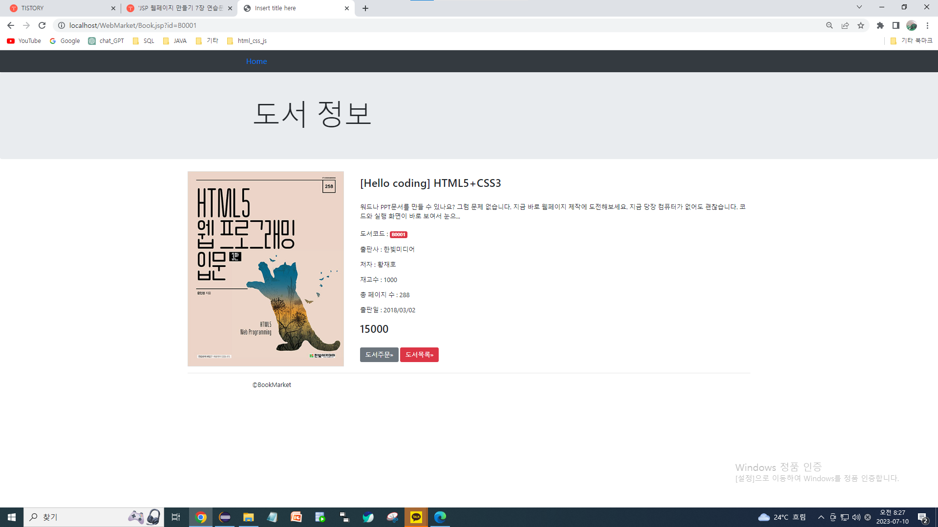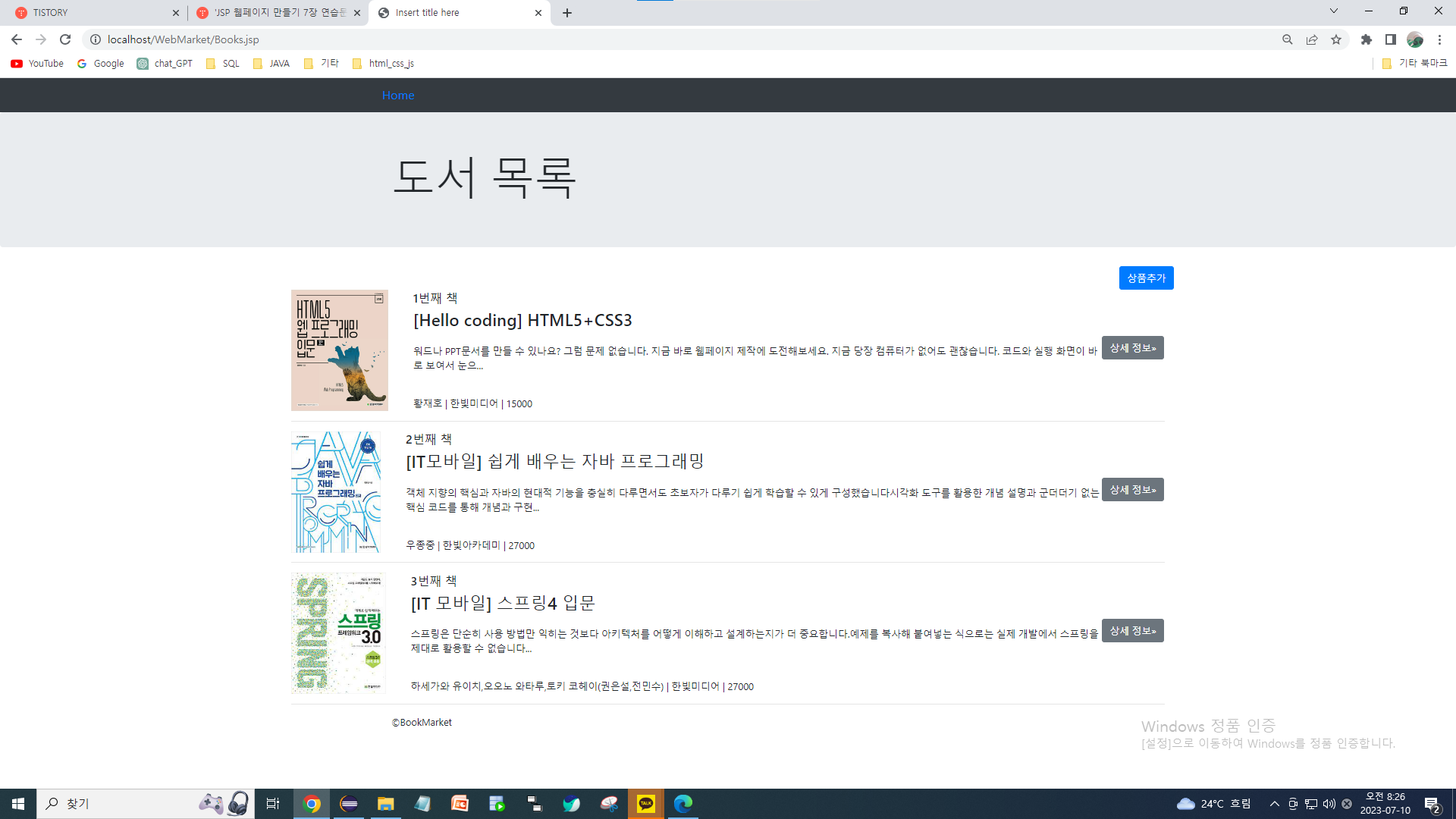 | JSP 웹페이지 만들기 8장 연습문제 (0) | 2023.07.15 |