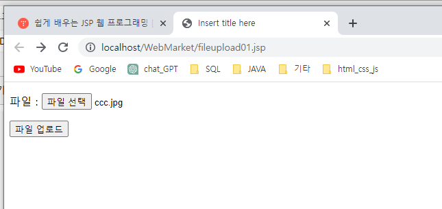 form 태그의 action 속성은 파일 업로드를 처리할 jsp 파일을 설정해야 함