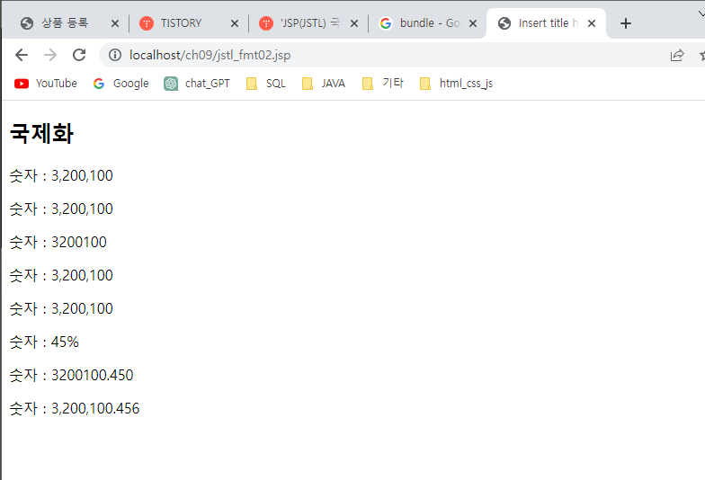 <p>숫자 : <fmt:formatNumber value="3200100" type="number"