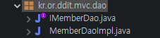 * 실제 DB와 연결해서 SQL문을 수행하여 결과를 Service에 전달하는 DAO의 interface