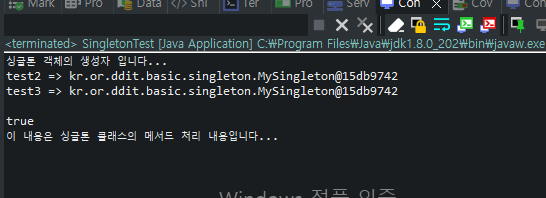 System.out.println("이 내용은 싱글톤 클래스의 메서드 처리 내용입니다...");