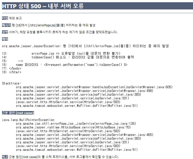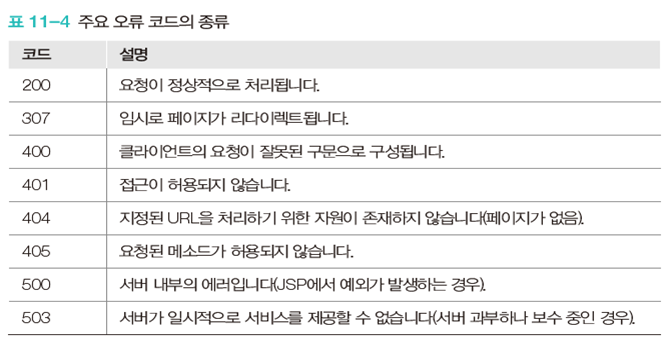 | 500 | 서버 내부의 에러다(JSP에서 예외가 발생하는 경우) |
