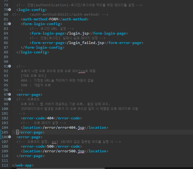 오류가 나면 오류 코드에 맞춰 오류 퍼리jsp로 매핑