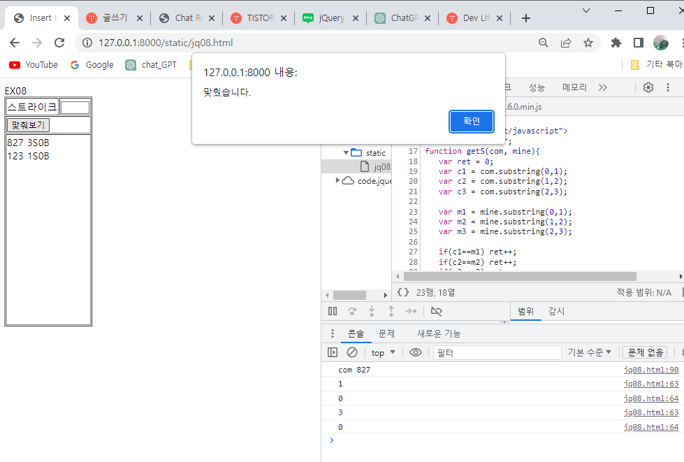 alert("맞췄습니다.");