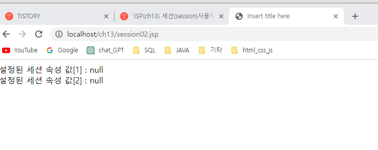 | JSP(ch13) 세션을 이용한 사용시간 구하기 (0) | 2023.07.14 |
