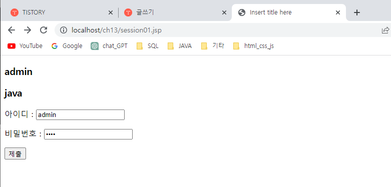 | JSP(ch13) 세션(session) (0) | 2023.07.13 |