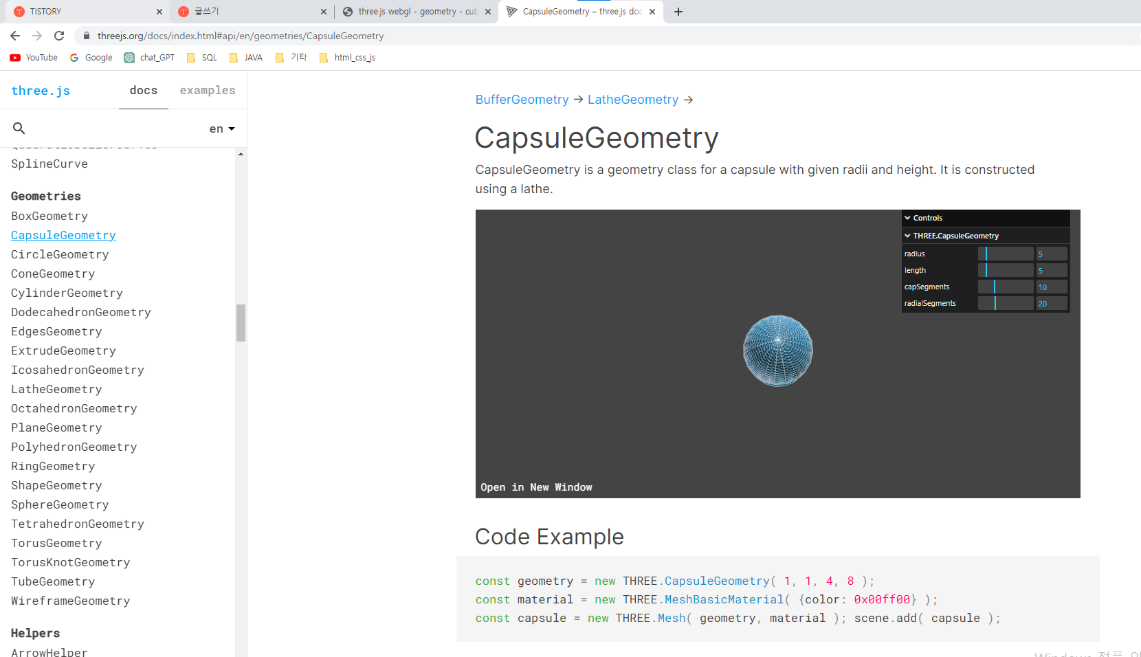 | Three.js EX05,EX06 SphereGeometry (0) | 2023.07.14 |