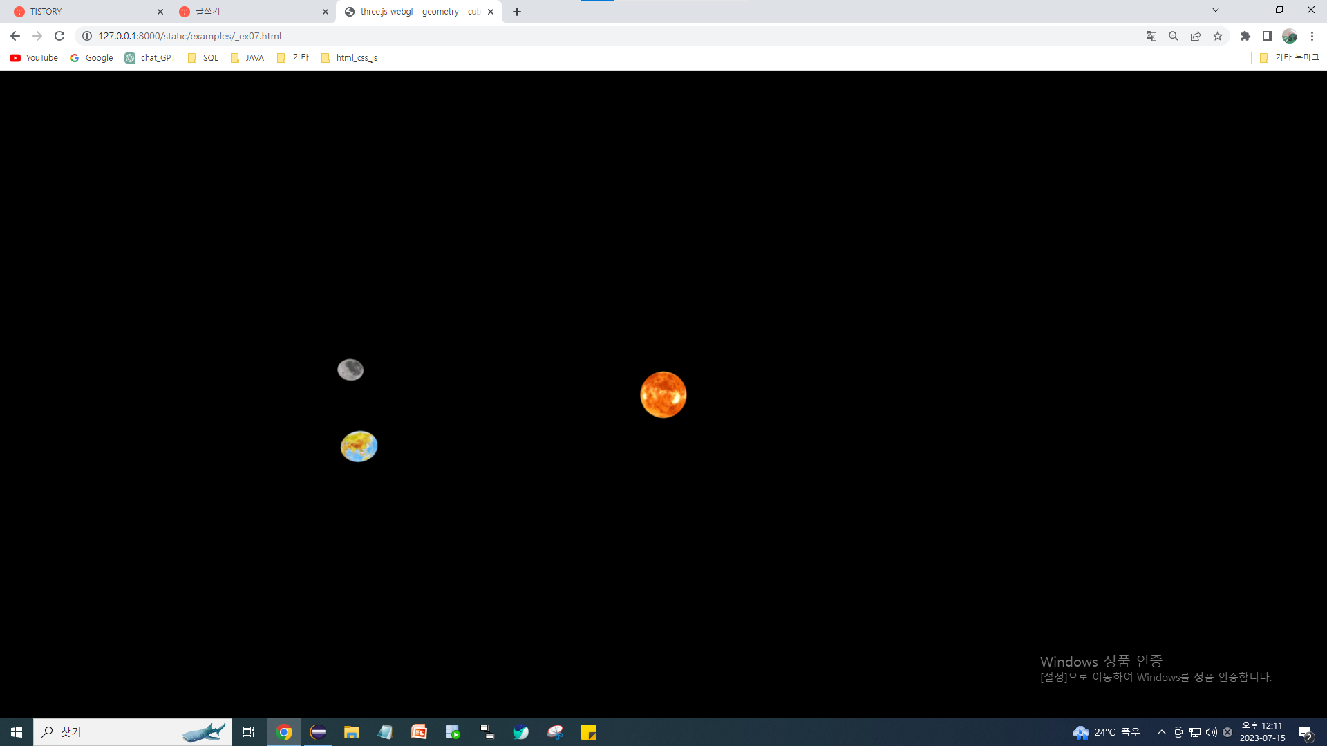 | Three.js EX08 우주만들어보기(지구중심) (0) | 2023.07.15 |