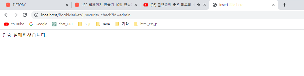 인증 실패하셧습니다.