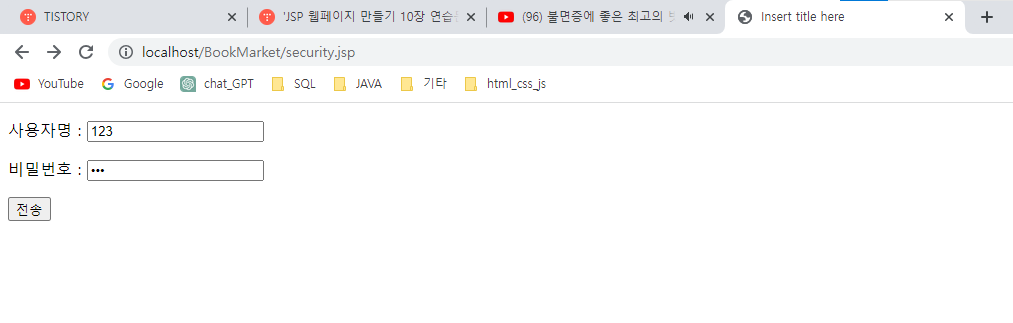 4.FORM기반 인증 처리 기법을 이용하여 다음 조건에 맞게 JSP 어플리케이션을 만들고 실행 결과를 확인하시오