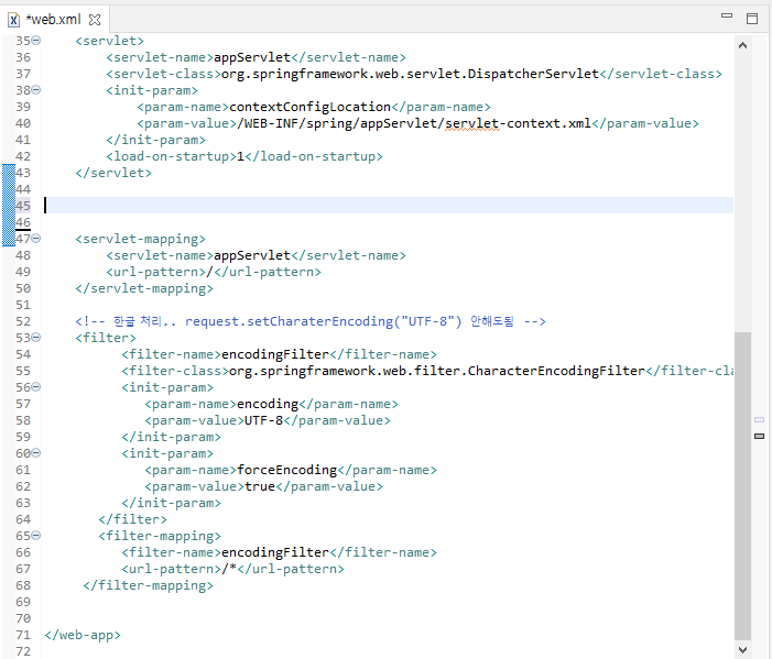 <filter-class>org.springframework.web.filter.CharacterEncodingFilter</filter-class>