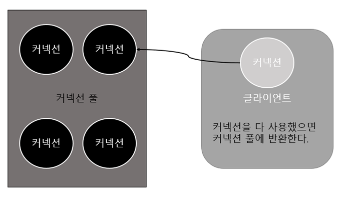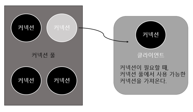 - 커넥션 풀이란 DB와 연결하는 커넥션을 미리 생성해 두고, 풀에 저장해 두었다 필요할 때