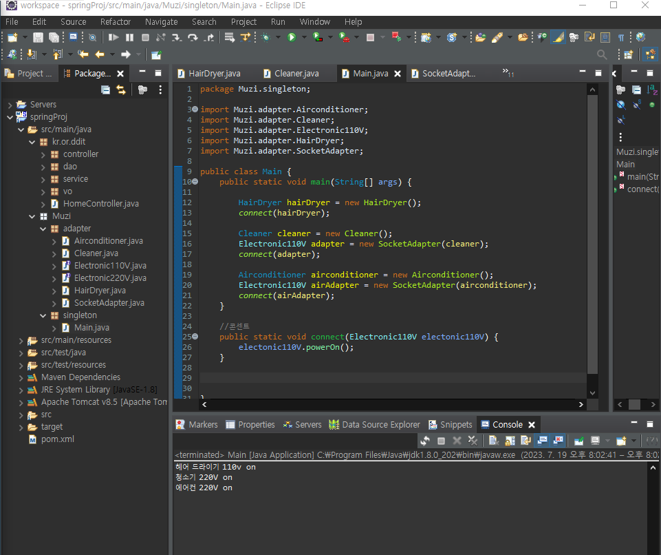 //new SocketAdapter을 사와 airconditioner(에어컨)과 연결해주고