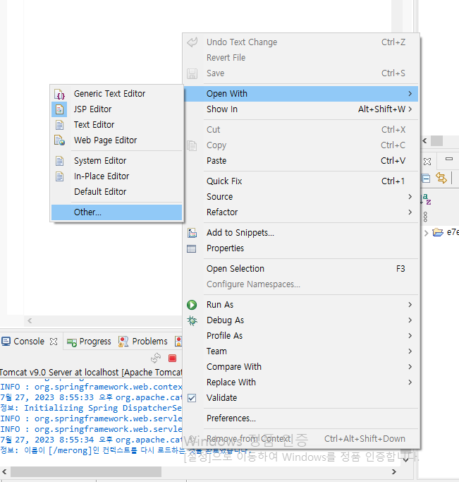 마우스 오른쪽 클릭하고 Open With에 Other클릭