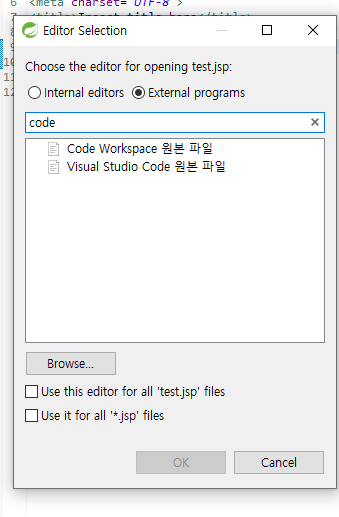 External programs클릭하고 code선택