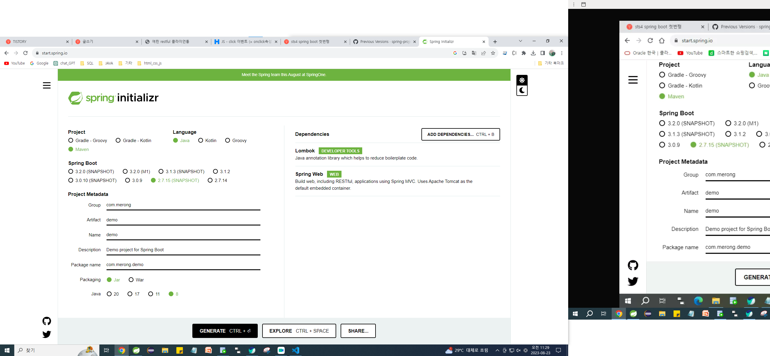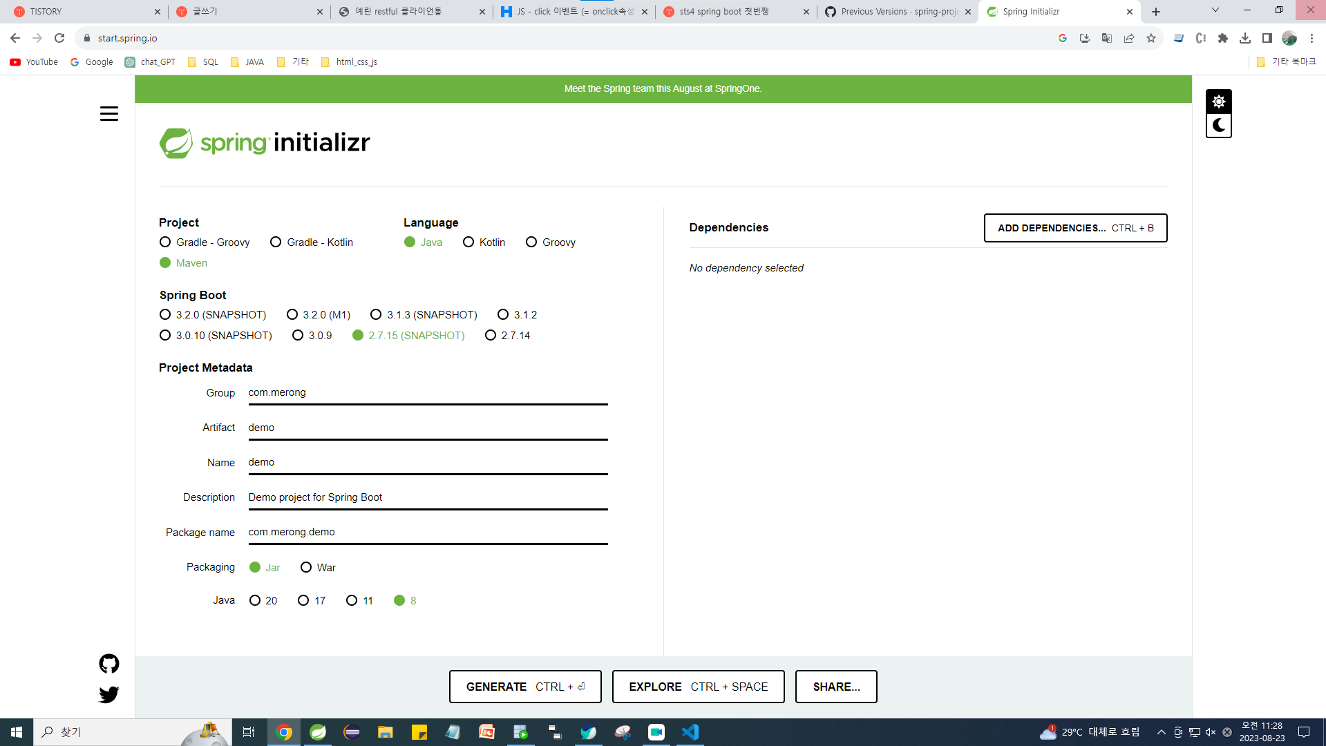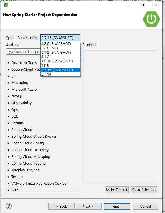 Spring Boot버전 2.7.15선택
