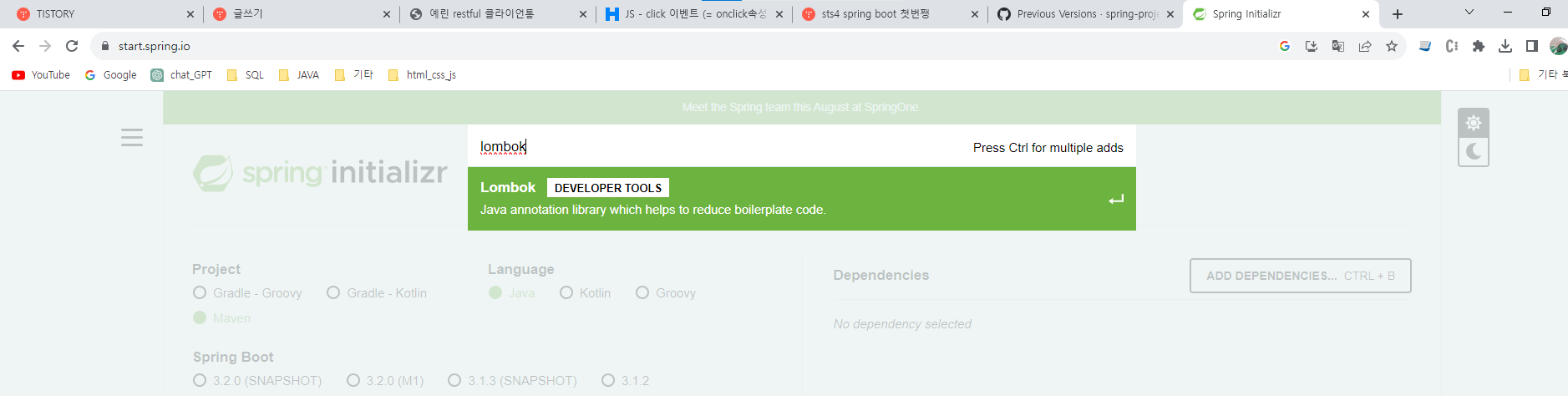 lombok검색해서 Lombok체크