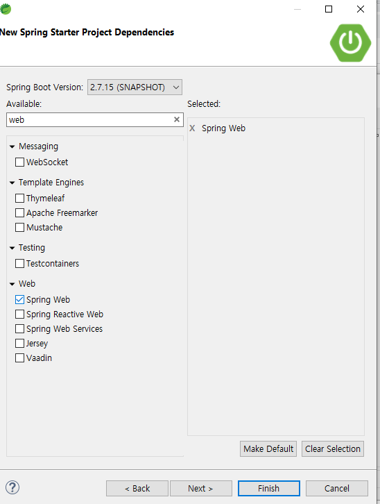 web검색해서 Spring Web체크