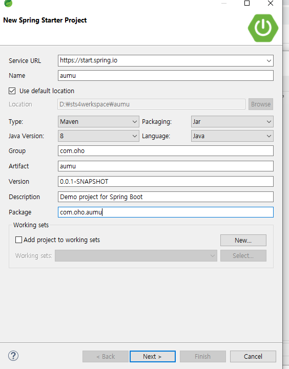 하고나면 File에 New 에 Spring Starter Project클릭