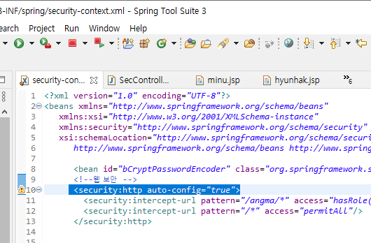 <security:intercept-url pattern="/angma/*" access="hasRole('ROLE_SUJI')" />