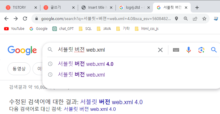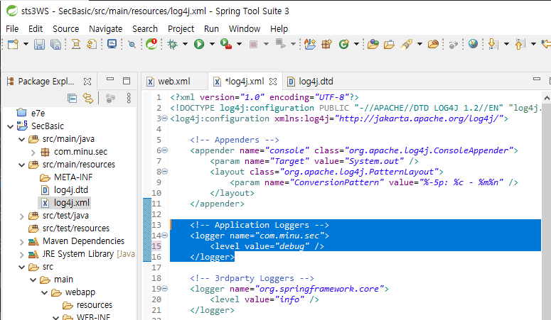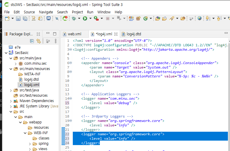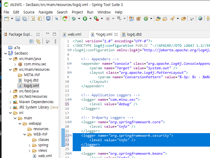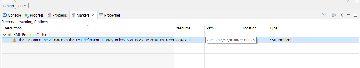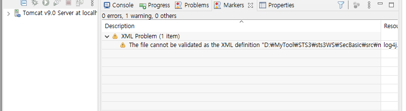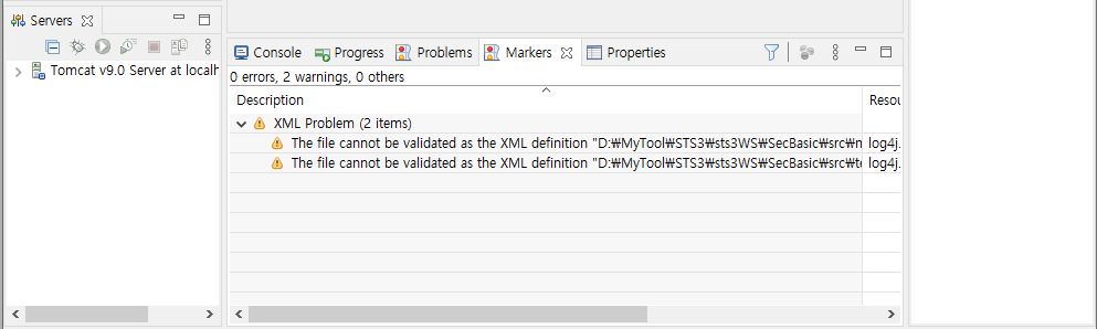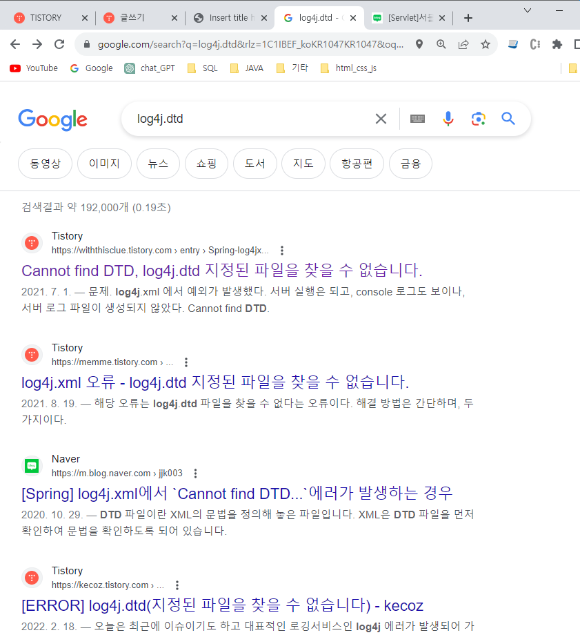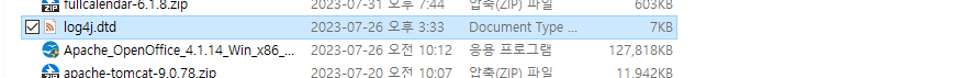 남은 오류는 log4j.dtd가 없다는 뜻인데