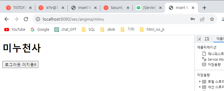 minu.jsp에가서 폼을 만들고 action을 /ogout으로 지정한다.