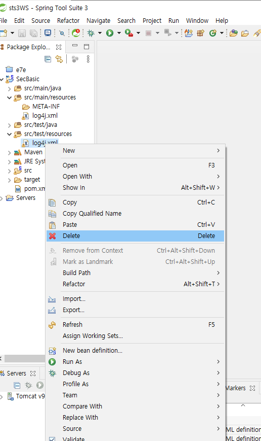 src/test/resources 파일 안에 log4j.xml파일 삭제 이유는 필요없음