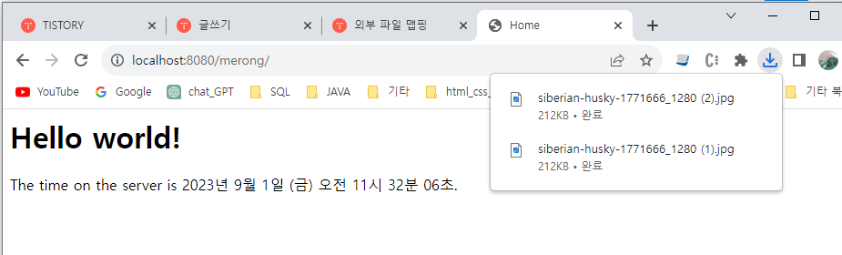 // upload만 ftp를 쓰공, 다운로드는 해당 폴더를 외부파일 맵핑 했을 경우