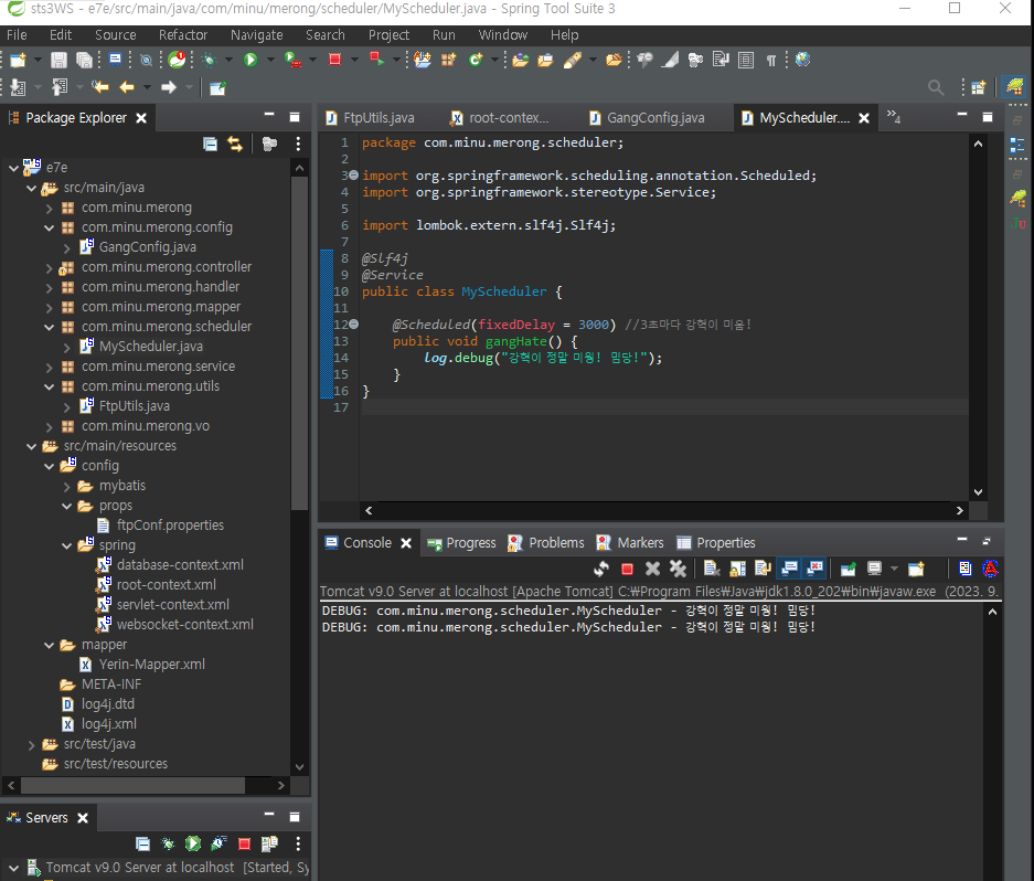 @Scheduled(fixedDelay = 3000) //3초마다 강혁이 미움!