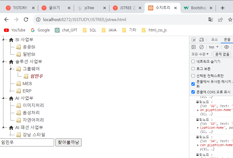 자바스크립트 tree 컴포넌트는 폴더구조나 조직도 표현등에 많이 사용되는뎅, 찾아보면 이것 저것(jstree,fancy tree, treejs 등등 유료/무료등등) 참 많당. 그 중에 jstree 사용법을 알아보장. (왱? 꽤 마