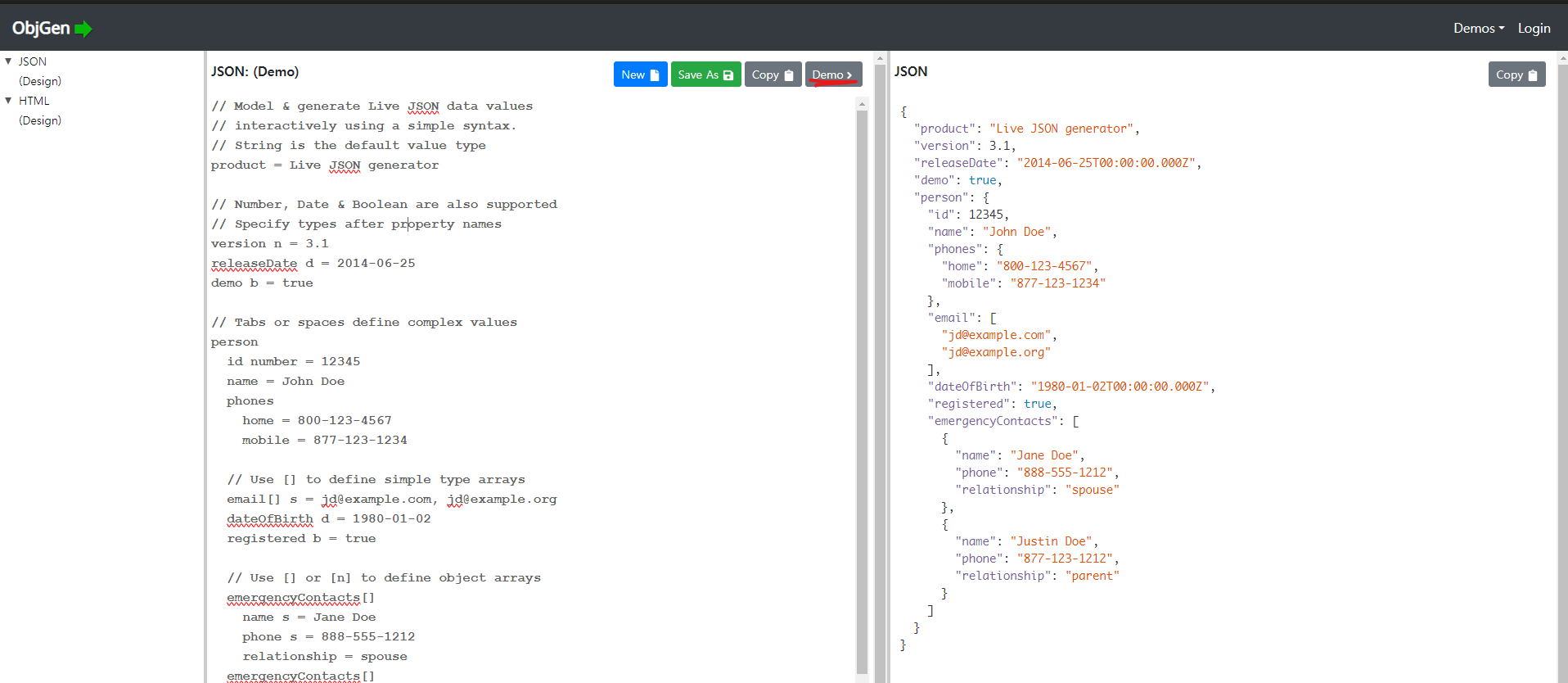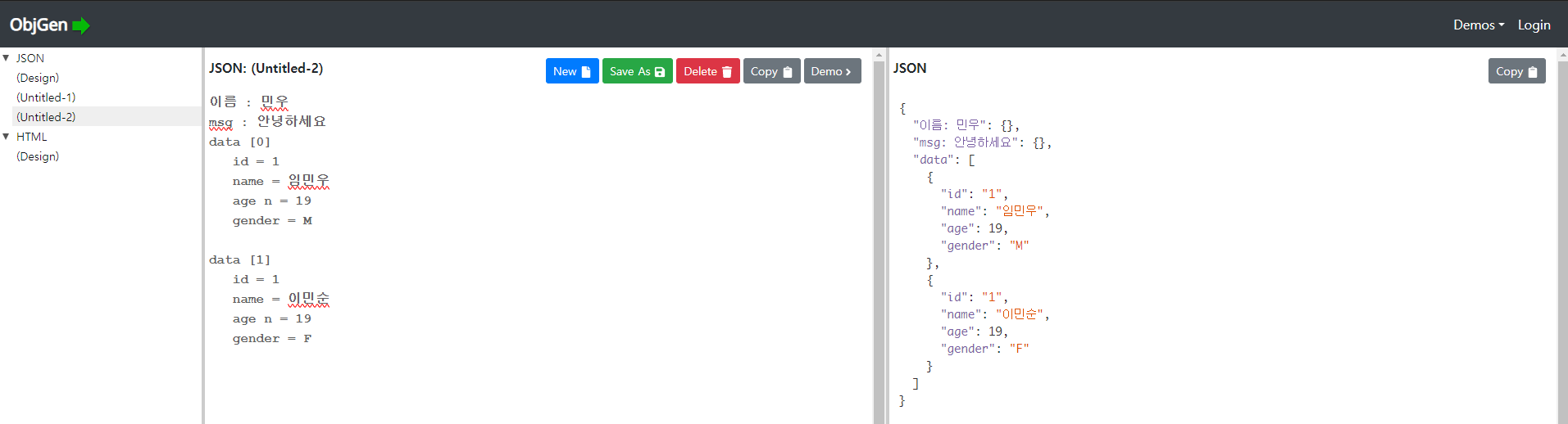 들어가서 JSON Generator를 클릭 -> Demo 클릭해보셈