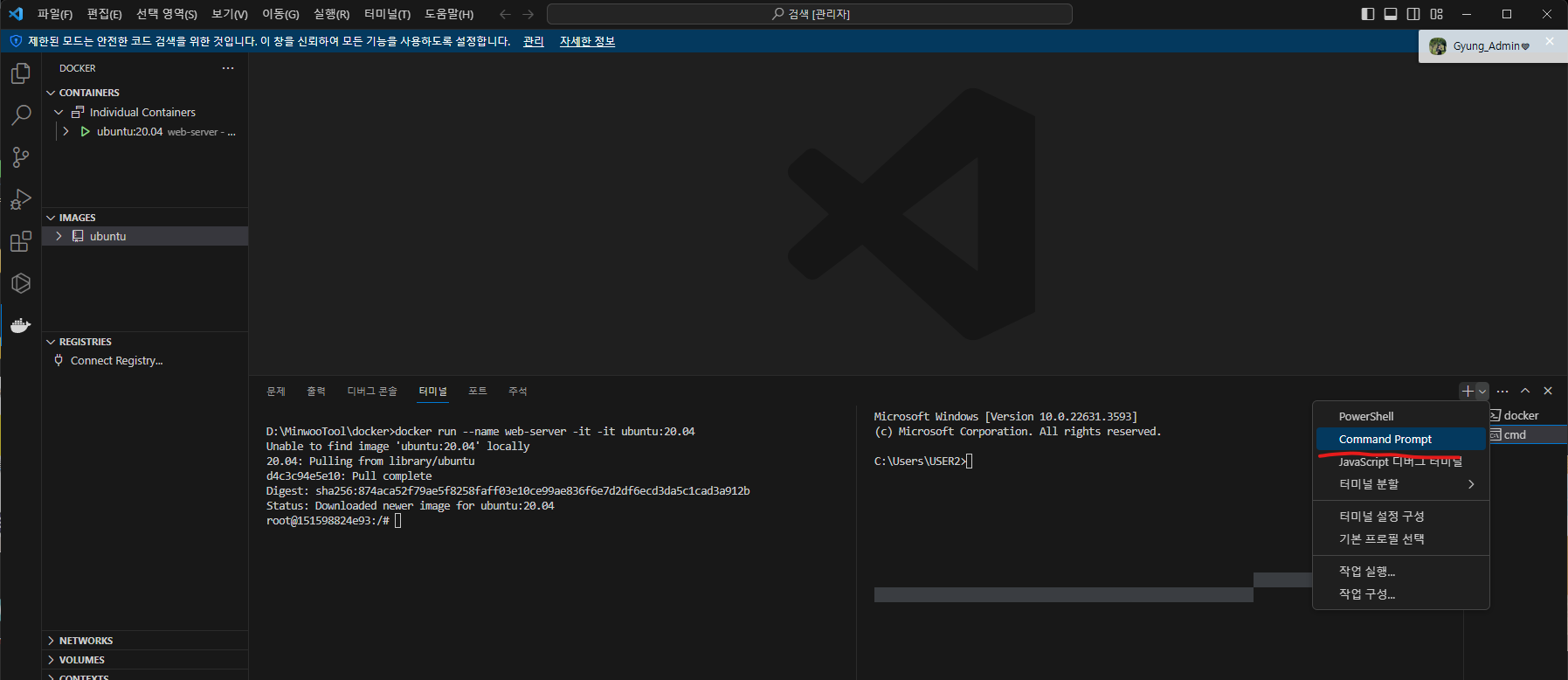 tip : powerShell열고 프롬프트에서 그냥 cmd라고 치면 알아서 cmd로 뀌기도함.