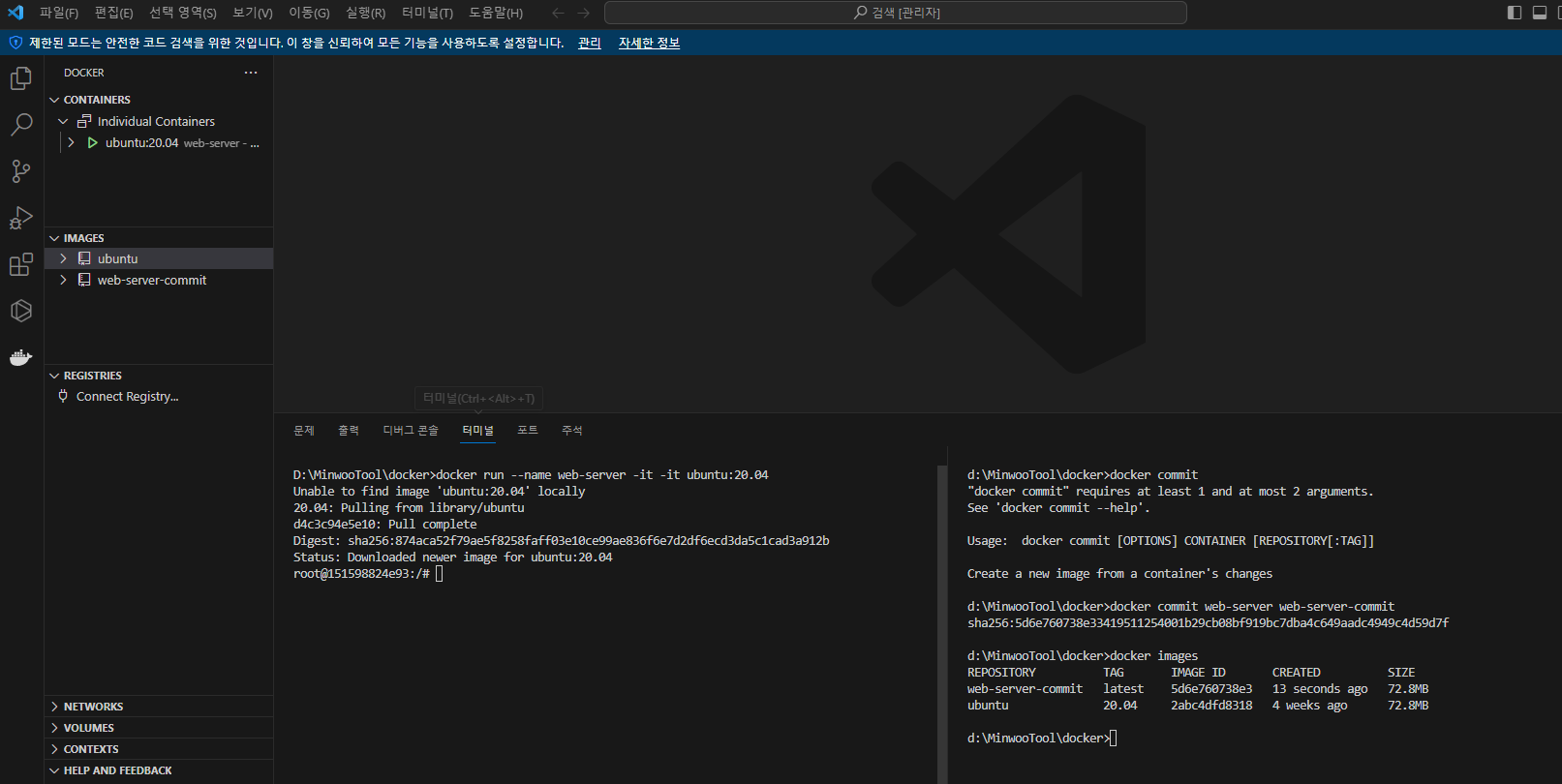 이렇게 ubuntu 20.04버전을 바탕으로한 이미를 commit 명령어로 생성함.