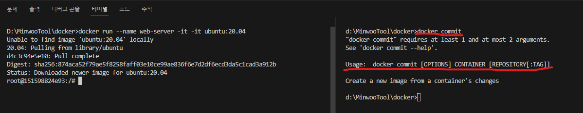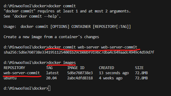 #web-server-commit : web-server-commit 이라는 이름으로 images를 생성하겠다.