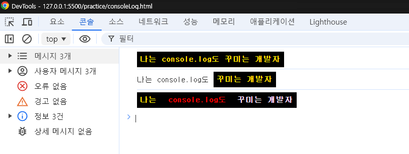 console.log("%c나는 %cconsole.log도 %c꾸미는 개발자",