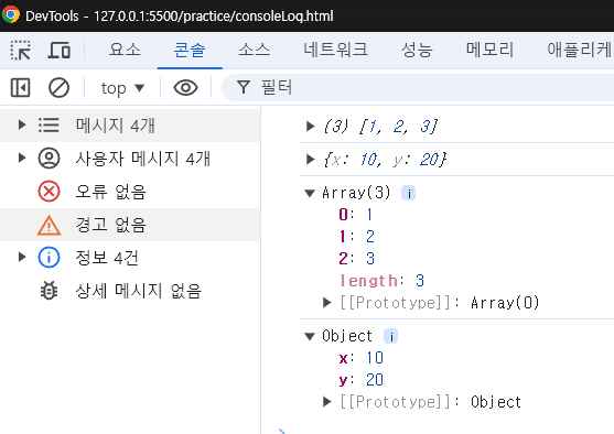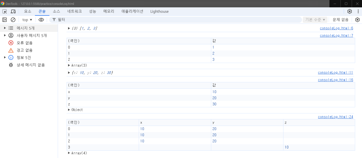 4. console.table() 배열이나 객체를 테이블 형태로 console 찍어줌