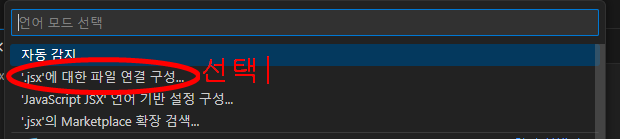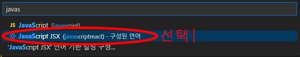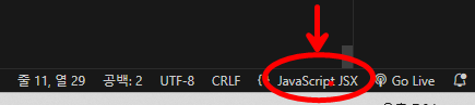 TIP. 혹 vscode 화면 오른쪽 아래가 아래 그림처럼 JavaScript JSX가 아니고