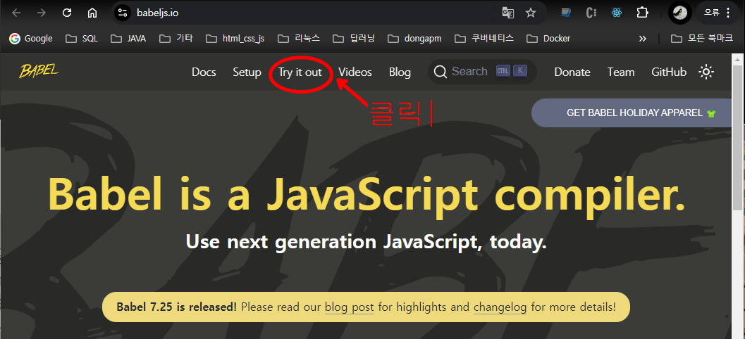 아래 사이트를 방문해서 Try it out 메뉴를 아래 그림처럼 클릭!!.