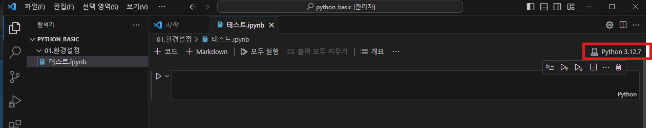 테스트.ipynb 파일을 만들어준다 여기서 .ipynb 확장자는 주피터 노트북 사용을 말한다