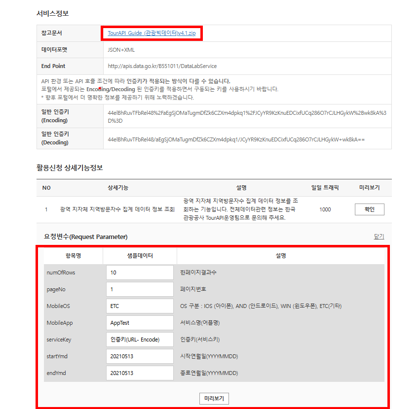 한국관광공사_관광빅데이터 정보서비스_ GW 데이터를 받아오는 샘플을 만들어 봤다