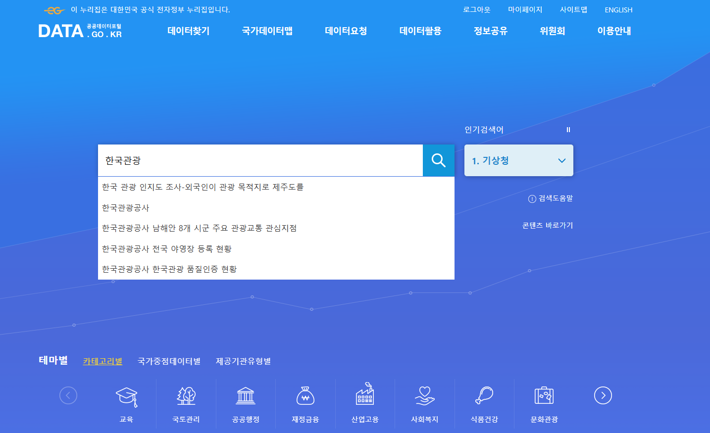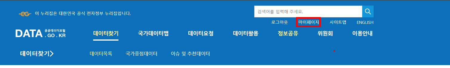 메인화면 또는 데이터 찾기에서 원하는 데이터 검색한다.