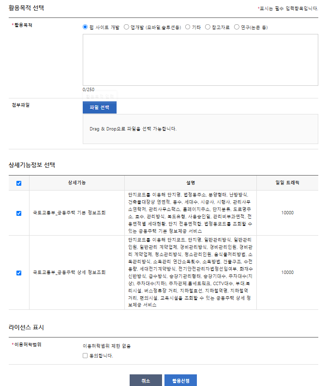 json을 지원하는 오픈 api에서 활용신청 클릭