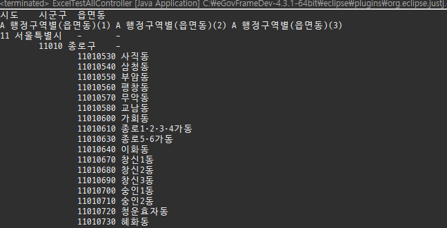 System.out.println("읍면동 " + eupmyeondong.getStringCellValue() + "\t");
